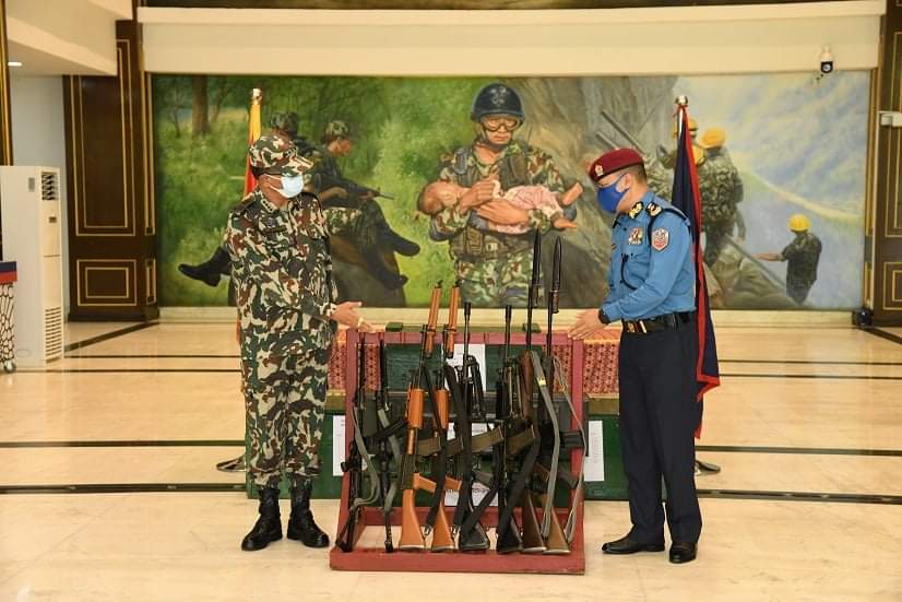 नेपाली सेनाद्वारा नेपाल प्रहरीलाई हतियार तथा एम्युनिशन
